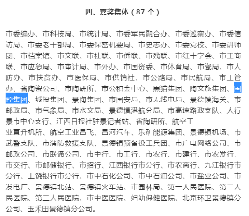 在此次表彰決定中,國控集團(tuán)榮獲嘉獎(jiǎng)集體。國控集團(tuán)陳望賢、林莉榮獲個(gè)人二等功,喻瑤、劉培靖等同志受到通報(bào)嘉獎(jiǎng)。