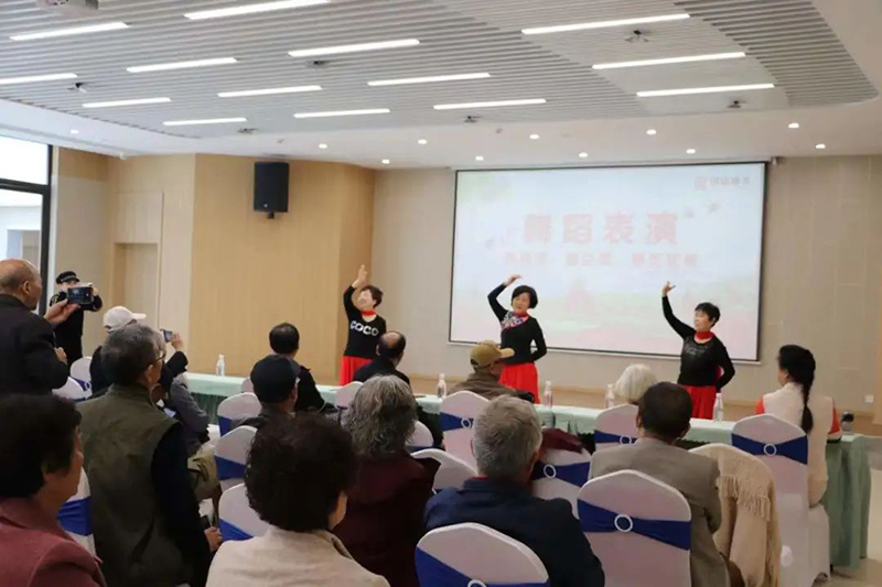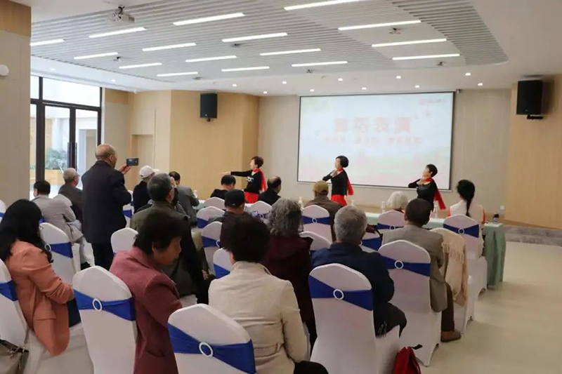 詩詞社學員們踴躍上臺表演,展現(xiàn)自己的才能。三人舞蹈,葫蘆絲吹奏,戲劇獨唱、太極拳表演等,表演形式多樣,內(nèi)容十分有趣,引得臺下掌聲不斷,贊美不絕?;顒蝇F(xiàn)場還邀請了國信康養(yǎng)入住老人參加,老人們喜悅之情溢于言表,他們笑著說道:“以后只要出門就能參加老年大學的教學實踐活動,也太方便了吧!”