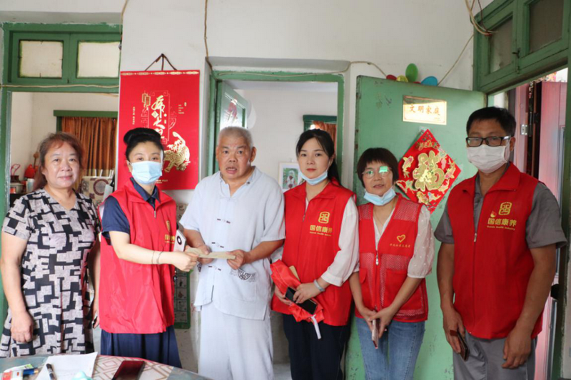 國信康養(yǎng)黨支部黨員干部、青年志愿服務(wù)隊一行人在華風社區(qū)黨支部書記的帶領(lǐng)下,對轄區(qū)3位貧困年長男性老黨員逐一上門拜訪慰問,為老人送上慰問金、大米、牛奶等生活物資,同時也給他們送去濃濃的關(guān)愛和節(jié)日的祝福。